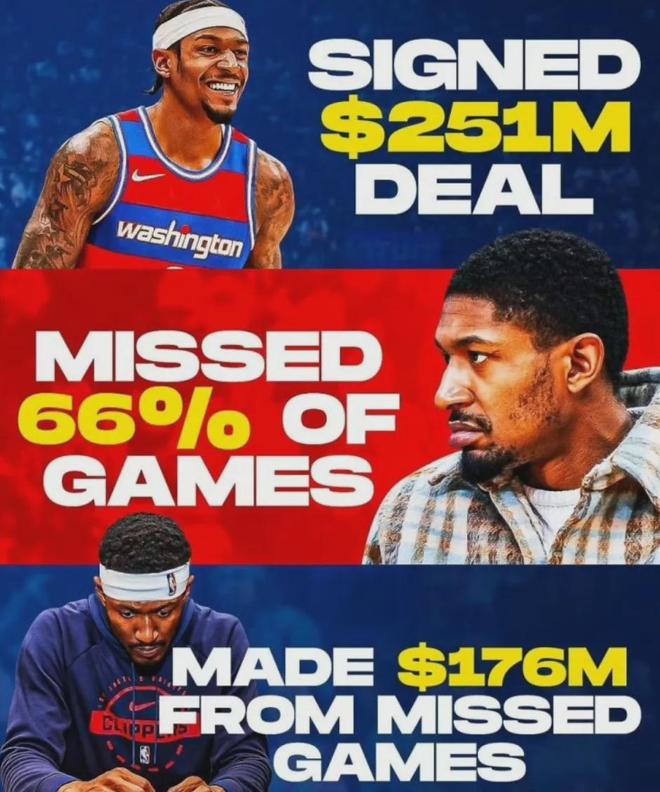 对于比尔个人来说,他倒是不亏,此前签下5年2.51亿美元的合同,随即缺席了66%的比赛,直接躺赚1.76亿美元。